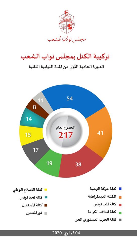 أعلن رئيس مجلس نواب الشعب، راشد الغنوشي، في بداية الجلسة العامة اليوم الثلاثاء 04 فيفري 2020 عن استقالة النائب الصحبي صمارة من كتلة المستقبل والتحاق النائب أحمد بن عياد بكتلة ائتلاف الكرامة.
