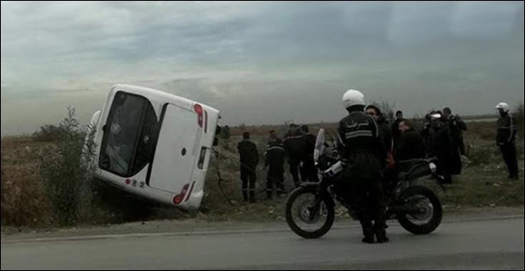 زووم - جدّ عشية اليوم السبت 08 فيفري الجاري حادث مرور بطريق العين كم 15 بصفاقس تمثّل في اِنقلاب حافلة تابعة للشركة الجهوية للنقل بالجهة.