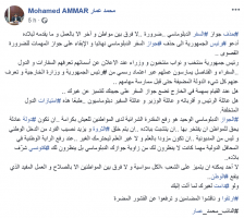وشدّد محمد عمار في تدوينة له على الفايسبوك على أنه لا أحد يمكنه أن يتميز على الشعب، قائلا إن الكل سواسية ولا فرق بين المواطنين إلا بالصلاح و العمل المفيد الذي ينفع الوطن.