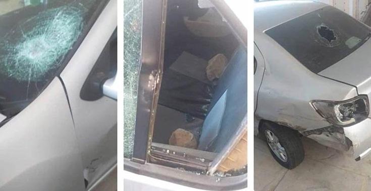 وقد تم تهشيم سيارة رئيس الفرقة بالحجارة ودهسها بسيارة من الخلف وإيقافها بسيارة أخرى من الأمام .