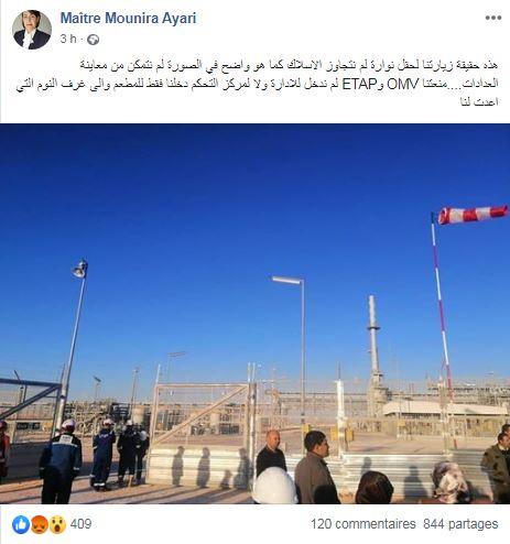 وأكّدت النائبة عن التيار الديمقراطي، منيرة عياري، اليوم الأحد، أنّ زيارة النوّاب لحقل نوارة لم تتجاوز الأسلاك كما أنّ اللجنة لم تتمكّن من معاينة العددات بعد أن منعتهم من ذلك كل من شركة "او ام في" النمساوية المنتصبة بصحراء تطاوين والمؤسسة التونسية للأنشطة البترولية.