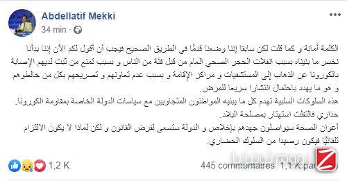 وتابع عبد اللطيف المكي "هذه السلوكيات السلبية تهدم كل ما يبنيه المواطنون المتجاوبين مع سياسات الدولة الخاصة بمقاومة الكورونا، حذاري فالتفلت استهتار بمصلحة البلاد".