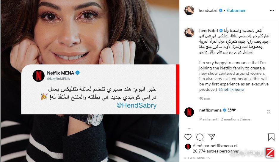 وعلّقت هند صبري ، الاثنين، على حسابها بالانستغرام، بقولها أنّ تشعر بالحماسة والسعادة وهي تُشاركنا خبر إنضمامها لعائلة نيتفليكس.