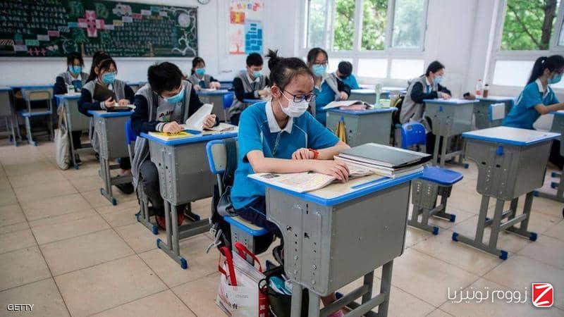 وشوهد تلاميذ مدينة ووهان وهم يرتدون الكمامات داخل الفصل، فيما يخضعون لفحص حراري عند الدخول، في إجراء وقائي للتأكد من سلامتهم.