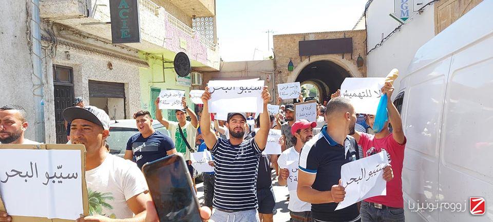 ورفع المحتجون لافتات تحمل شعارات مختلفة مثل ''سيّب البحر'' و ''لالتهميش'' وغيرها، منادين بضرورة الإلتفات لأوضاعهم الإجتماعية التي تردّت بعد إقرار الحجر الصحي بفعل إنتشار فيروس كورونا المستجد.