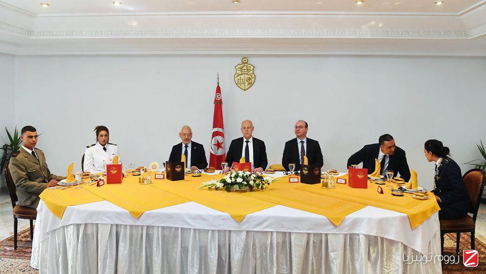 وحضر هذه المأدبة رئيس مجلس نواب الشعب راشد الغنوشي ورئيس الحكومة إلياس الفخفاخ وعدد من أعضاء الحكومة، إلى جانب عدد كبير من سامي القادة والضباط العسكريين من مختلف الأسلاك العسكرية للجيوش الثلاثة (البر والبحر والطيران).