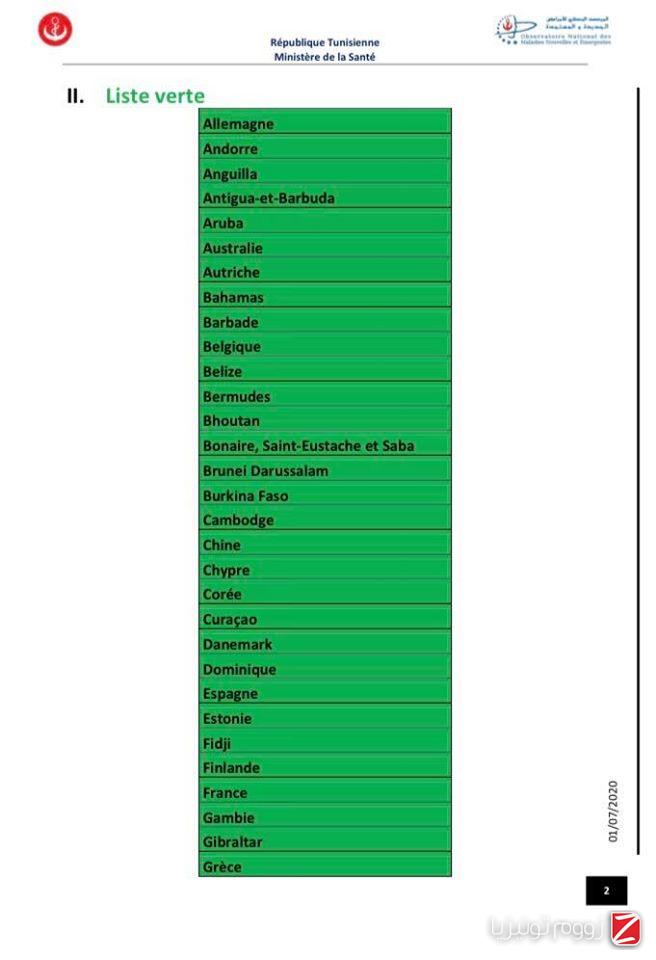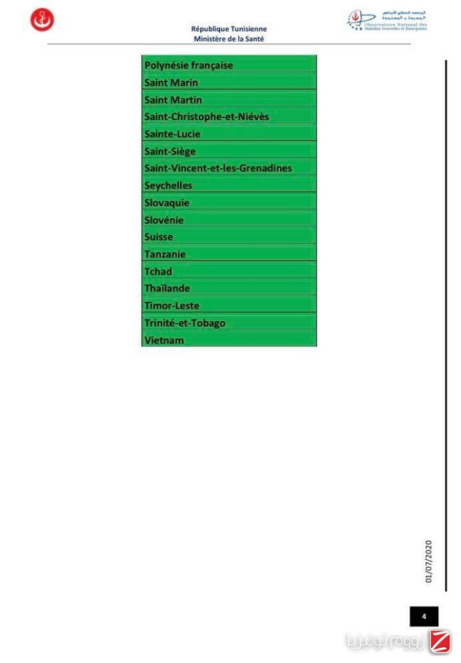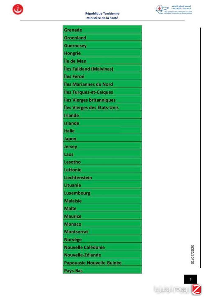 وللتوضيح تشمل القائمة الخضراء الدول التي يكون فيها انتشار الوباء ضعيف والتي لا يخضع القادمون منها إلى إجراءات وقائية خاصة.