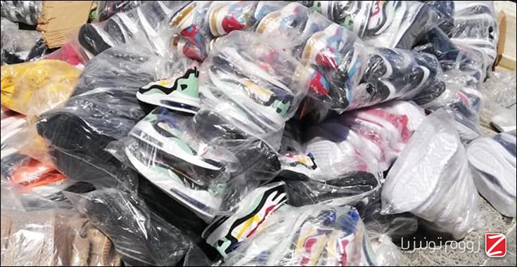 زووم - قامت مصالح الإدارة الفرعية للاستعلامات بالحرس الديواني بالتنسيق مع فرقة الحرس الديواني ببن عروس بحجز 4700 قطعة ملابس جاهزة وأحذية تحمل علامات مقلدة متأتية من التهريب.