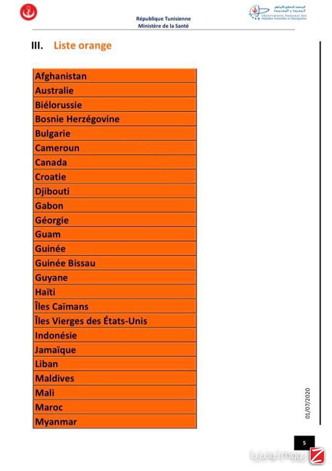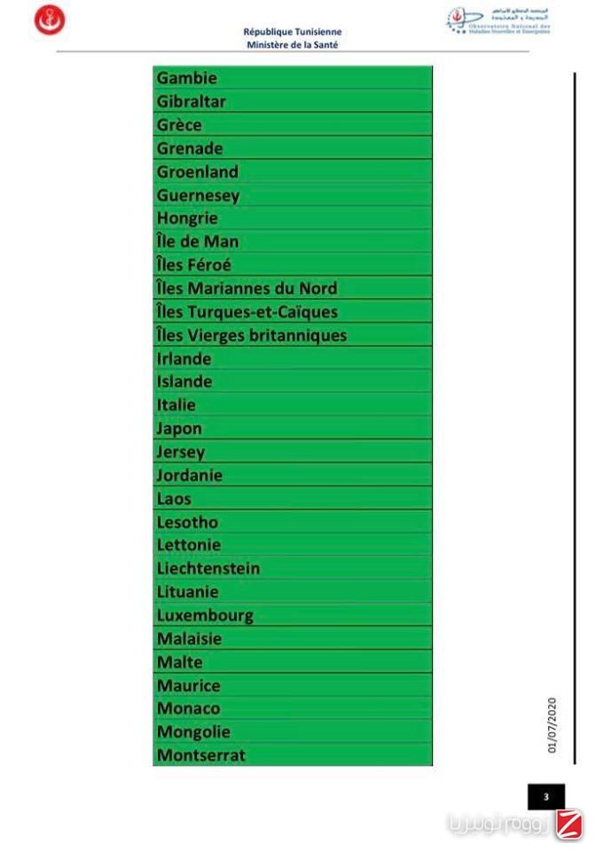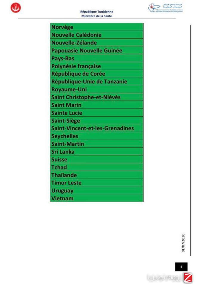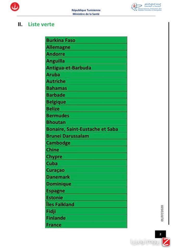 وللتوضيح تشمل القائمة الخضراء الدول التي يكون فيها انتشار الوباء ضعيف والتي لا يخضع القادمون منها إلى إجراءات وقائية خاصة.