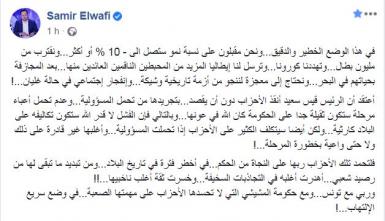 وأضاف سمير الوافي "فلتحمد تلك الأحزاب ربها على النجاة من الحكم...في أخطر فترة في تاريخ البلاد".