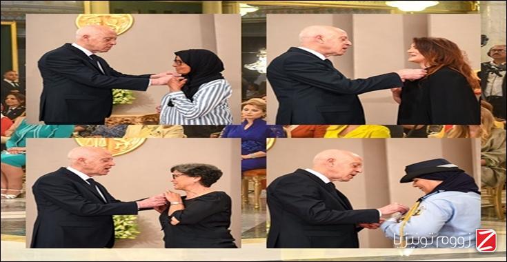 وتميز موكب الاحتفال بتوسيم عدد من نساء تونس من مختلف المجالات.