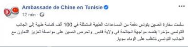 الصين تُساعد تونس بـ100 ألف كمامة لمجابهة كورونا
