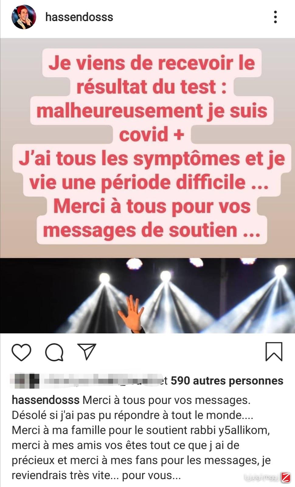 ويأتي ذلك إثر مشاركته في حفل حضره عدّة مشاهير اِحتفالا ببرنامج "دريم ستوري" على قناة التاسعة من بينهم طليقة بلال الباجي رانيا البولاهمي التي اِتضح أنّها مصابة بالفيروس.
