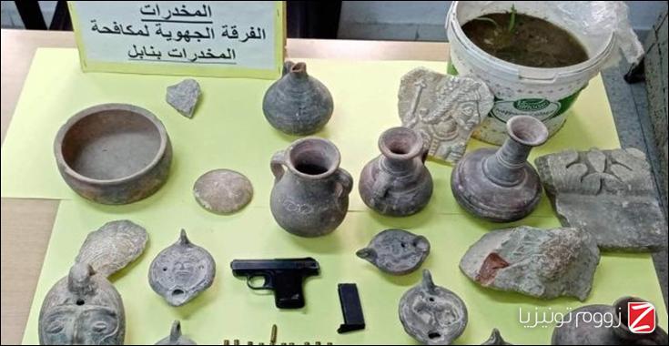 وبتفتيش مقر سكنى المعني بعد استشارة النيابة العمومية، تم حجز 238 بذرة من مخدر الزطلة و03 "محابس" مزروع بها 03 نباتات من المخدر المذكور و18 قطعة أثرية ومسدس و21 خرطوشة.