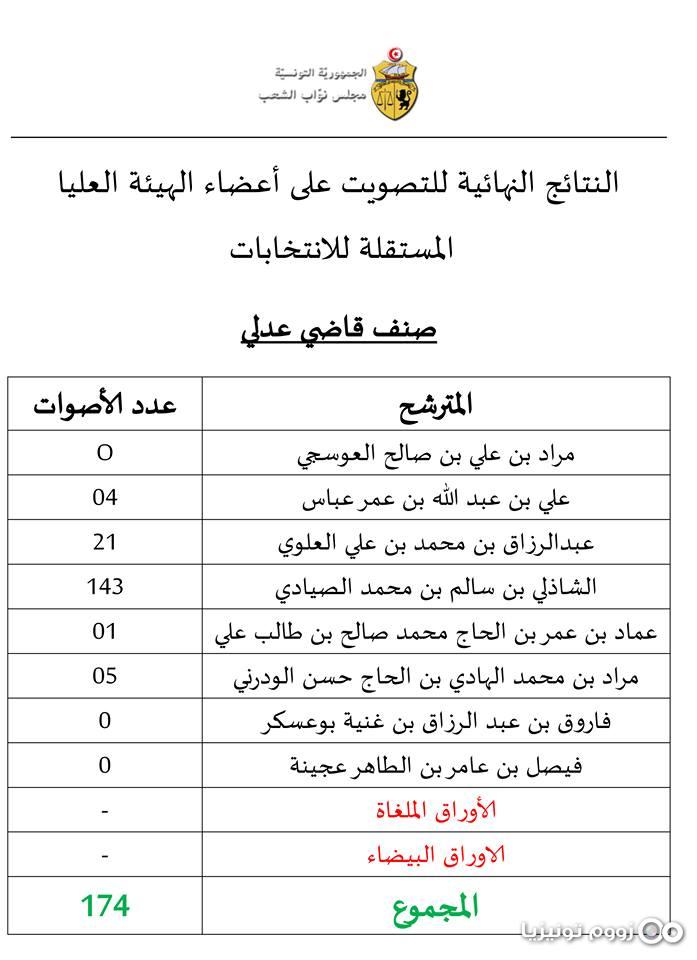 هذا وقد تقرّر إعادة التصويت في دورة ثانية لإختيار أعضاء الهيئة العليا المستقلة للإنتخابات صنف قاضي عدلي.