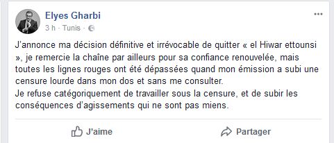 أعلن الاعلامي الياس الغربي استقالته من قناة الحوار التونسي.