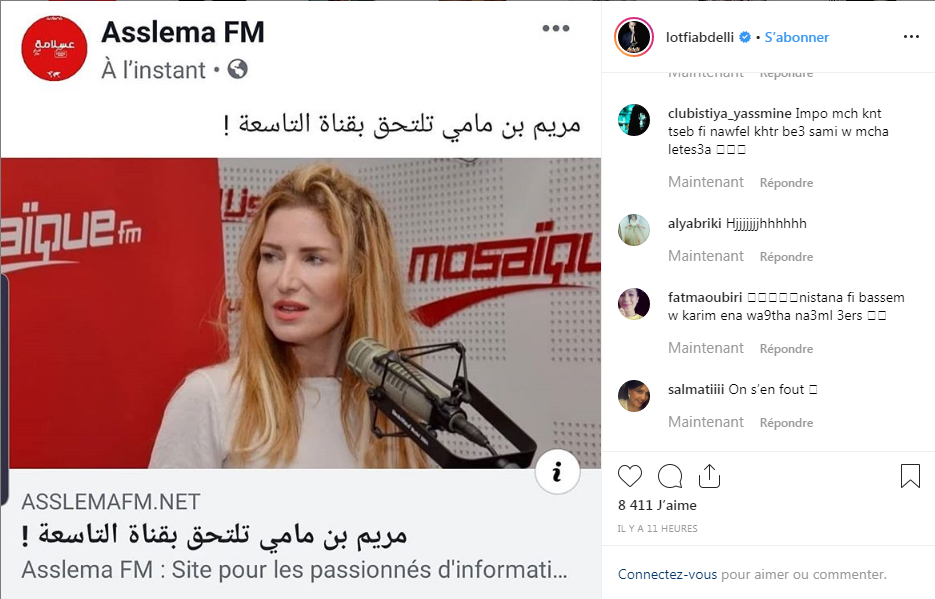 أكّدت الممثلة مريم بن مامي، مساء امس الأربعاء، أنّ منصة "الانستغرام" أصبحت "سوق دعارة".