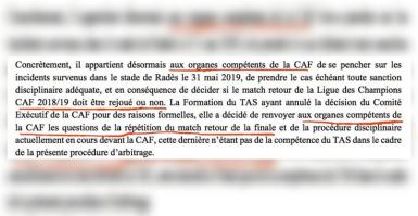 قررت التاس إلغاء قرار المكتب التنفيذي للكاف في باريس بـ "تجريد الترجي من اللقب واعادة المباراة في بلد محايد وإعا ...