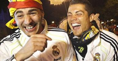 ونشرت الصحيفة صورة يظهر بها مهاجم ريال مدريد كريم بنزيما وكريستيانو رونالدو وهما تبادلان الضحك