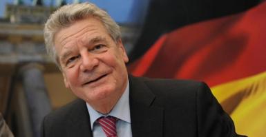كرم الرئيس الألماني يواخيم جاوك، اليوم الإثنين، لاعبي منتخب ألمانيا لكرة القدم الـ23 ومدربهم يواخيم لوف، في ...