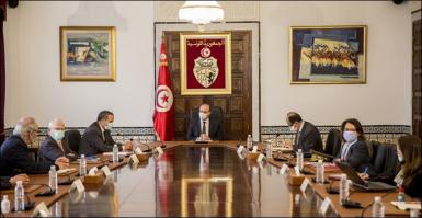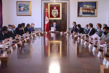 أشرف رئيس الحكومة إلياس الفخفاخ صباح اليوم الإثنين 13 أفريل 2020 بقصر الحكومة بالقصبة على مجلس وزاري مضيـّق خُصّص لمت ...