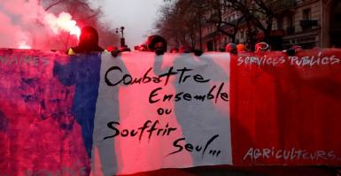 دخل إضراب شل شبكة النقل العام وتسبب بإغلاق المدارس في أنحاء فرنسا، يومه الثاني، وهددت نقابات العمال باستمرا ...