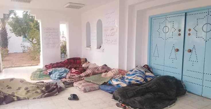 زووم - دخل ظهر اليوم عدد 13 شابا من المعتصمين بمقر ولاية تطاوين في اضراب جوع.