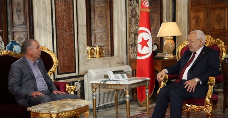 اِستقبل راشد الغنوشي رئيس مجلس نواب الشعب صباح اليوم الثلاثاء 31 مارس 2020 نور الدين الطبوبي الأمين العام للاتحاد العام ...