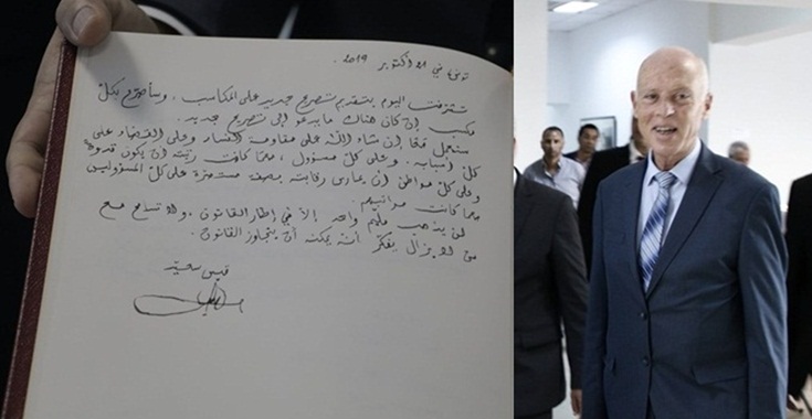 توجه الرئيس الجديد المنتخب قيس سعيد برسائل للشعب التونسي.