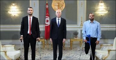 زووم - استقبل رئيس الجمهورية قيس سعيّد مساء الجمعة 23 أكتوبر 2020 بقصر قرطاج، جريحيْ الثورة الشابين يسري الزرلي ووليد ا ...