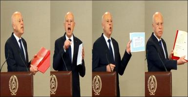 (فيديو) سعيّد يأتي محمّلاً بالنصوص والدساتير: "فليعلم الجميع أنّ رئيس الدولة هو القائد الأعلى للقوات المسلحة العسكرية والمدنية"