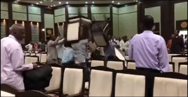 زووم - اِشتبك عدد من أعضاء الأحزاب والقوى السياسية السودانية بالأيدي والكراسي، الأربعاء، خلال اجتماعهم مع المجلس العسكري ...