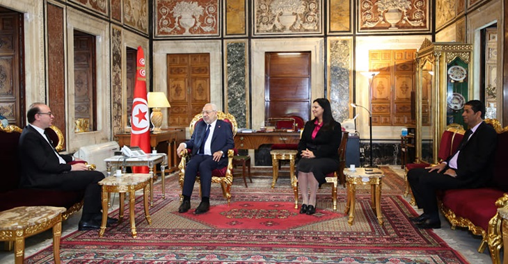 استقبل راشد الغنوشي رئيس مجلس نواب الشعب صباح اليوم السبت 4 أفريل 2020 إلياس الفخفاخ رئيس الحكومة بحضور سميرة الشواشي ...
