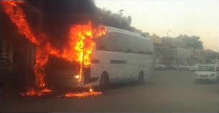 زووم - اِحترقت مساء اليوم الخميس حافلة بالكامل على مستوى الطريق الشعاعية بشارع فطومة بورقيبة.