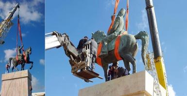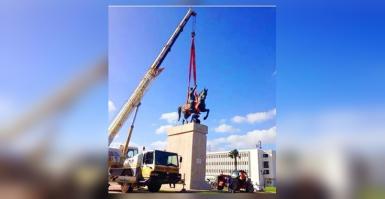 تداولت مواقع التواصل الاجتماعي صباح اليوم، 03 ماي 2016، صورة لتمثال الحبيب بورقيبة بحلق الوادي وهم بصدد نقله.