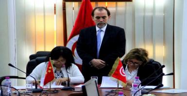 أشرف سعيد العايدي وزير الصحّة ظهر اليوم الجمعة 29 أفريل 2016 بمقرّ الوزارة على موكب توقيع العقد المتعلّق بإنجاز المست ...