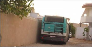 تداولت بعض صفحات المواقع الاجتماعية صورة لحافلة وهي في حالة توقف أمام منزل خاص.