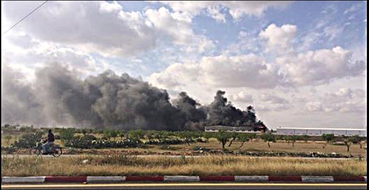 زووم - اِندلع على الطريق الرابطة بين قرمدة والأفران من ولاية صفاقس حريق في مصنع يحتوي على حوالي 1200 طن من المواد الأ ...
