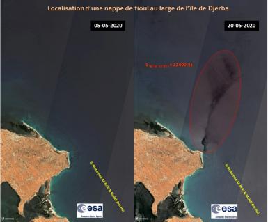 تداول رواد موقع التواصل الاجتماعي فايسبوك، صورة ملتقطة للقمر الصناعي Sentinel 2، تظهر بقعة نفطية ...