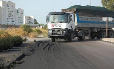 كارثة صحية وجريمة دولة.. نقل الفحم البترولي عبر شاحنات مخصصة لنقل القمح والشعير (صور)!