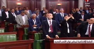 رفع عدد من نواب كتلة ائتلاف الكرامة وكتلة حركة النهضة شعار "ديغاج" ضد رئيسة كتلة الحزب الدستوري الحر عبير م ...