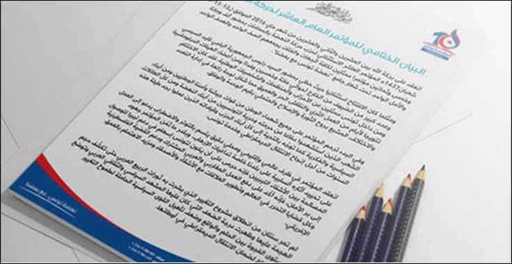 زووم - أصدرت حركة النهضة ، اليوم الأربعاء 25 ماي 2016 ، البيان الختامي للمؤتمر الإستثنائي العاشر الذي اِنعقد أيام 20، ...