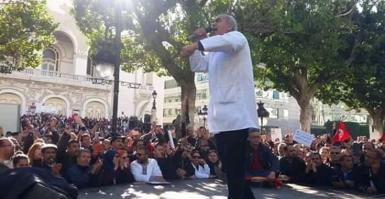 ألقى اليوم الأربعاء، 19 ديسمبر 2018، كاتب عام الجامعة العامة للتعليم الثانوي لسعد اليعقوبي كلمة في شارع الحبيب بورقيبة.