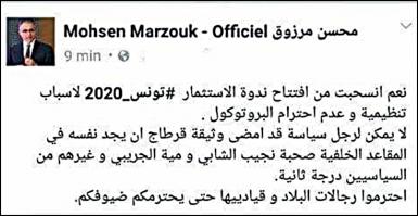 أكّد الأمين العام لحركة مشروع تونس، محسن مرزوق، اليوم السبت 10 ديسمبر 2016، أنّ استقالة عدد من أعضاء المكتب السياسي للح ...