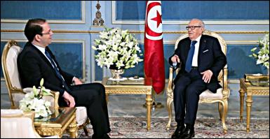 اِستقبل رئيس الجمهورية الباجي قايد السبسي يوم الاثنين 27 مارس 2017 بقصر قرطاج يوسف الشاهد رئيس الحكومة.