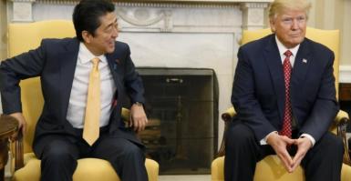 صافح الرئيس الأميركي، دونالد ترامب، ورئيس الوزراء الياباني شينزو آبي، بعضهما البعض بشكل طريف، خلال التقاطهما صورا أما ...