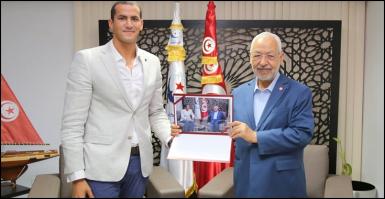 زووم - كرّم رئيس حركة النهضة راشد الغنوشي البطل التونسي السبّاح أسامة الملولي تقديرا منه للمجهودات التي بذلها أسامة ا ...