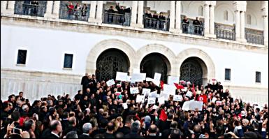نظم اليوم الثلاثاء المحامون التونسيون مسيرة من شارع باب بنات بالعاصمة الى ساحة الحكومة بالقصبة احتجاجا على الجباية المفر ...