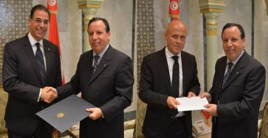تسلم وزير الشؤون الخارجية خميس الجهيناوي اليوم الأربعاء، 04 جانفي 2017، من بحر الدين هارون إبراهيم نسخة من أوراق اعتم ...