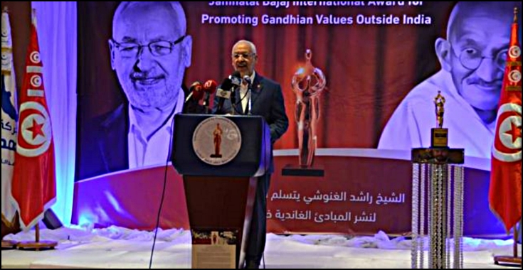 تسلّم رئيس حركة النهضة راشد الغنوشي، عشية يوم الإثنين 7 نوقمبر 2016 في مدينة مومباي الهندية، الجائزة الدولية لمؤسسة جمنا ...